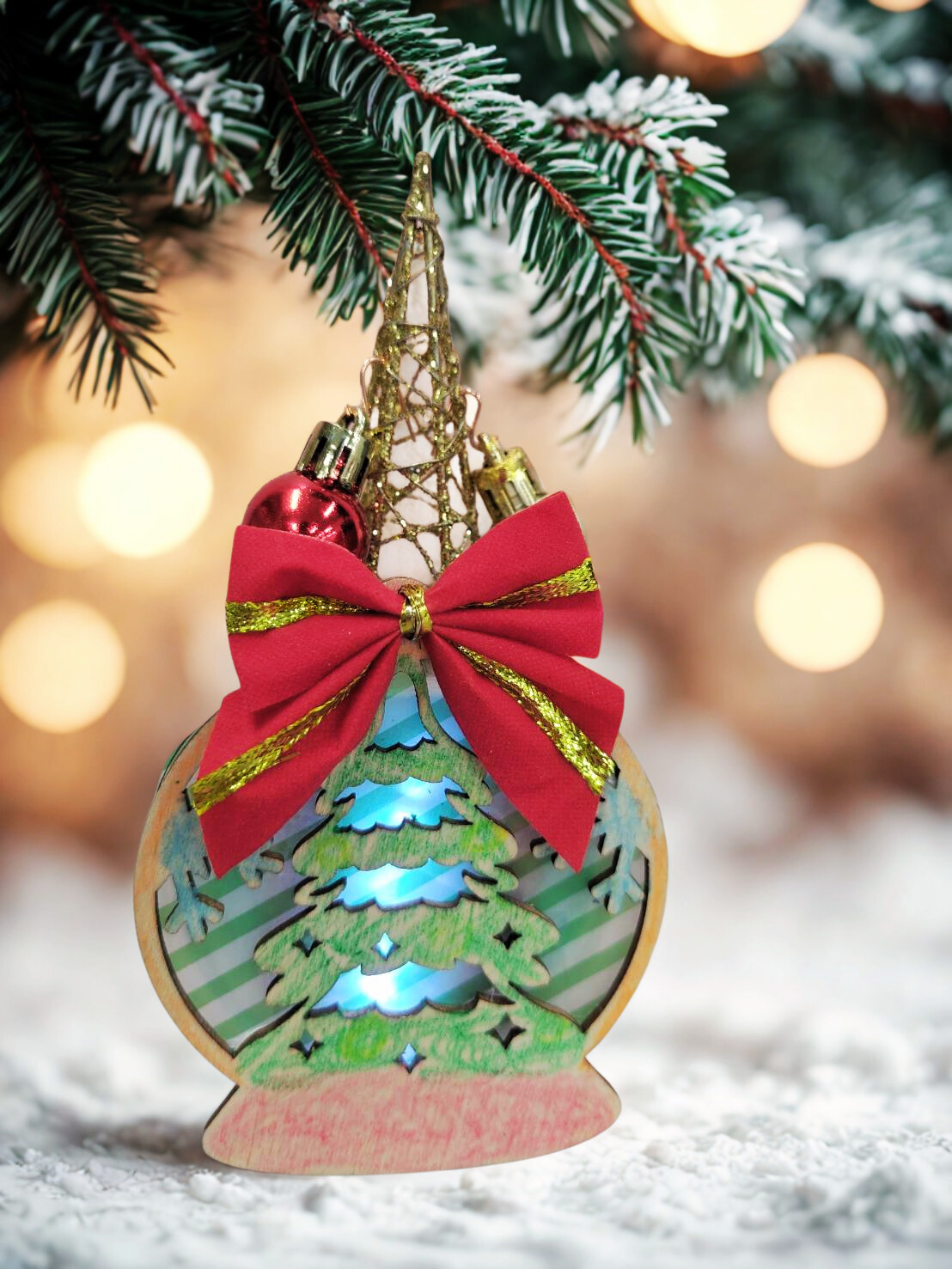クリスマス用のオーナメントに色をつけて、光らせたい部分を決めたら銅箔テープとLED、ボタン電池をつけていきます。